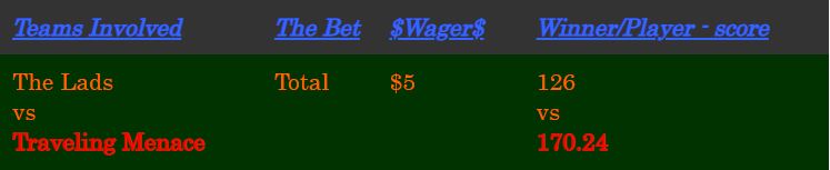 K:MakeClevelandGreatAgain (wins tie-breaker over Drunkin Pumpkins)M. Badgley - 12